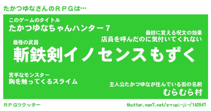 | 伝説のあだ名 | 『伝説のスナイパーたかつゆな』 |