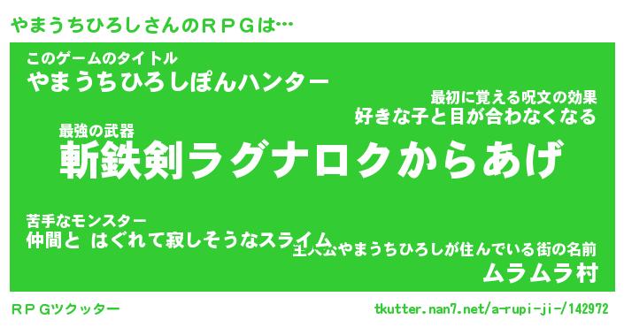 | 伝説のあだ名 | 『伝説の竜騎士やまうちひろし』 |