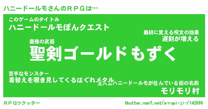 | 胡散臭い通販商品みたいなあだ名 | 『必ず成功する霊験あらたかなお札…その名も「ハニードールモ」』 |