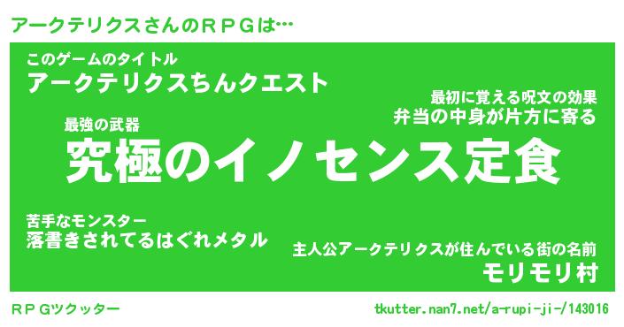 | 料理風あだ名 | 『節約★アークテリクスと油揚げの玉子丼』 |