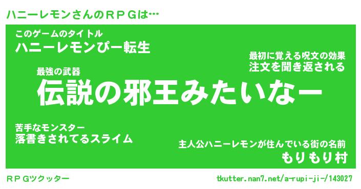 | 料理風あだ名 | 『節約★ハニーレモンと油揚げの玉子丼』 |