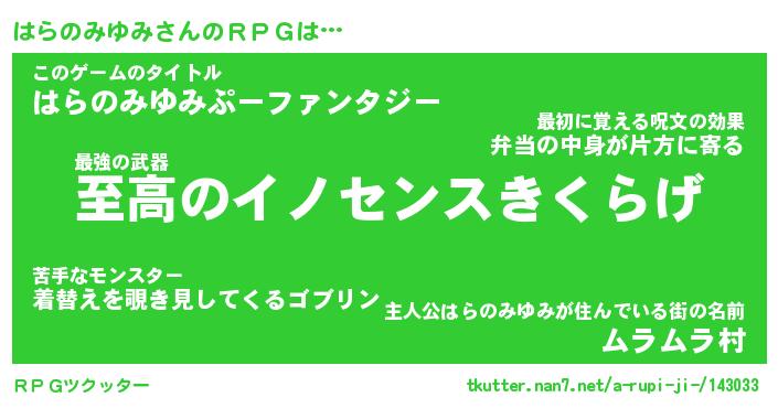 | 女子向けラノベタイトル風あだ名 | 『はらのみゆみ姫と円卓の騎士』 |