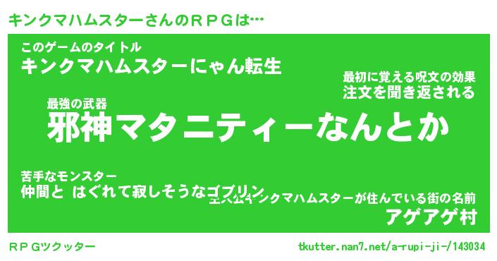 | 胡散臭い通販商品みたいなあだ名 | 『億万長者になれる霊験あらたかなお札…その名も「キンクマハムスター」』 |