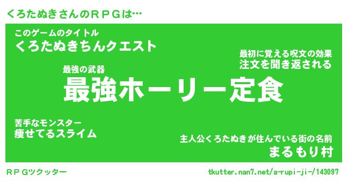 | ファンタジー風あだ名 | 『クロフェル』『エターナルクロタヌキー』 |