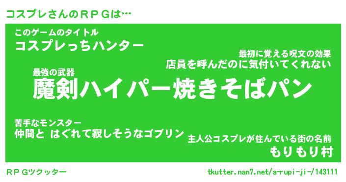 | 男性向けラノベタイトル風あだ名 | 『コスプレの憂鬱』 |