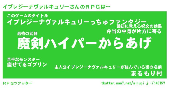 | 胡散臭い通販商品みたいなあだ名 | 『必ず成功するブレスレット…その名も「イブレジーナヴァルキュリー」』 |
