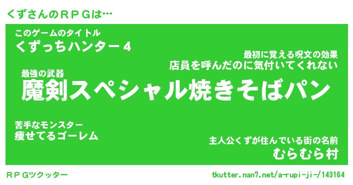 | 伝説のあだ名 | 『伝説の竜騎士くず』『最強の忍者くず』 |
