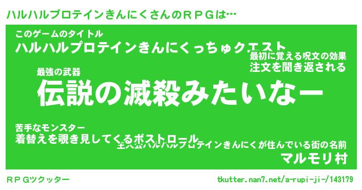 | 胡散臭い通販商品みたいなあだ名 | 『モテモテ間違いなし霊験あらたかなお札…その名も「ハルハルプロテインきんにく」』 |