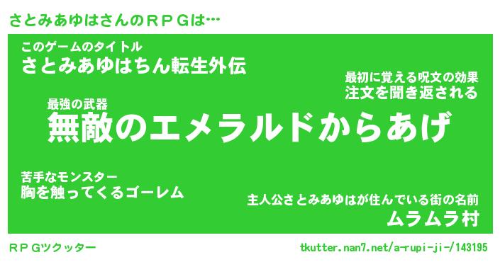 | 男性向けラノベタイトル風あだ名 | 『サトミアユハアートオンライン』 |