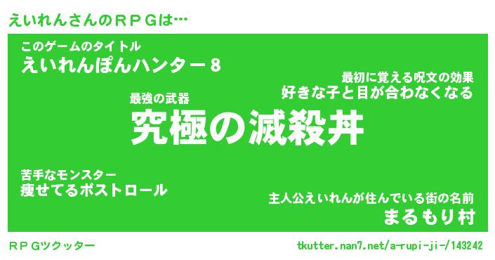| ヒーロー風カッコイイあだ名 | 『スーパーエイレン』『魔戒騎士エイ』 |