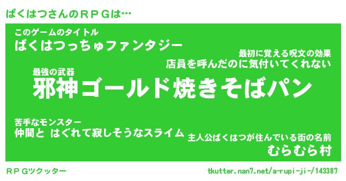 | ファンタジー風あだ名 | 『バクフェル』『エターナルバクハツー』 |