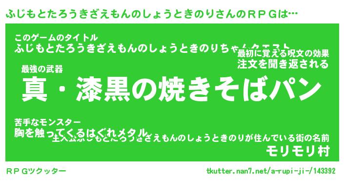 | ツイッター | ふじもとたろうきざえもんのしょうときのりさんのツイッターID『namakemono_kun』 |
