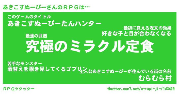 | 男性向けラノベタイトル風あだ名 | 『アキコスヌーピーアートオンライン』 |