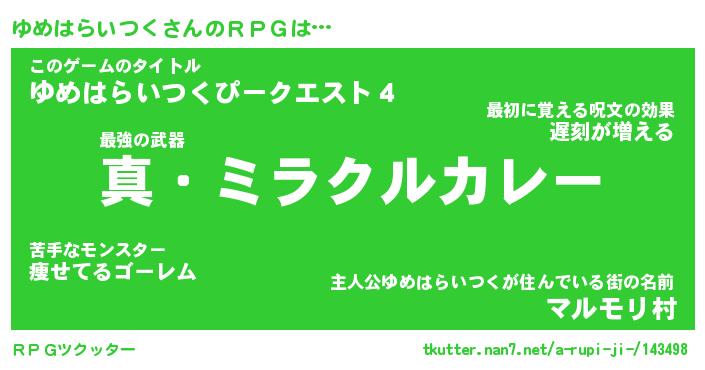 | 伝説のあだ名 | 『封印されし竜騎士ゆめはらいつく』 |