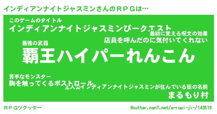 | 男性向けラノベタイトル風あだ名 | 『インディアンナイトジャスミンアートオンライン』 |