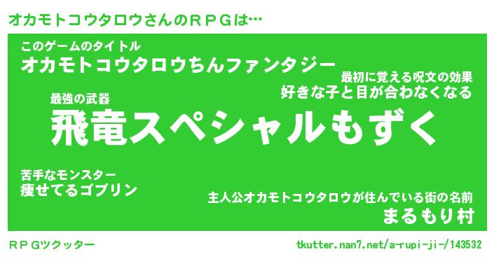 | 意味不明あだ名 | 『ペロリンオカモトコウタロウ』 |