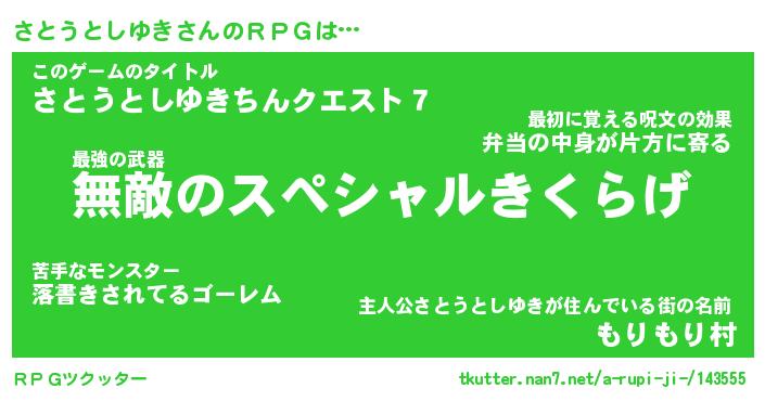 | 伝説のあだ名 | 『封印されし竜騎士さとうとしゆき』 |