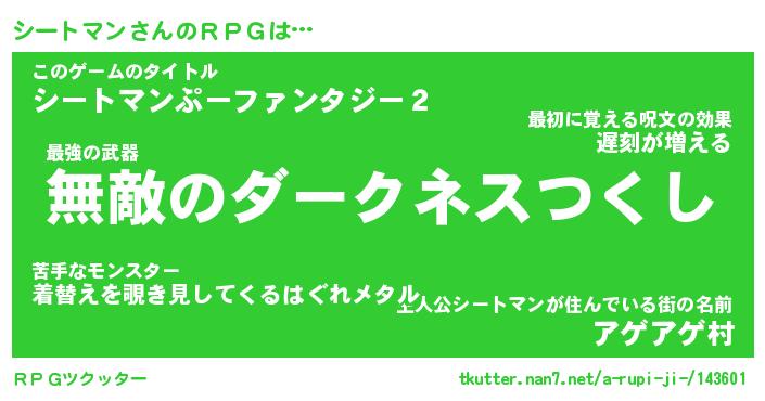 | ファンタジー風あだ名 | 『シーフェル』『エターナルシートマンー』 |