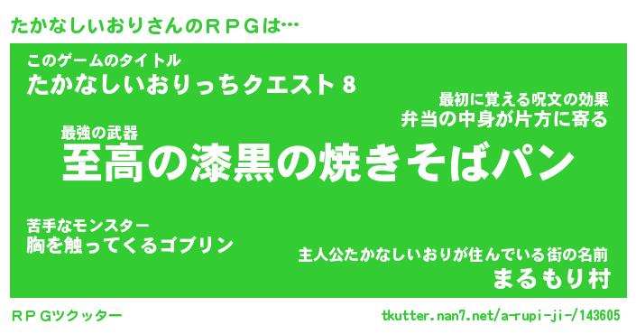 | 女子向けラノベタイトル風あだ名 | 『たかなしいおり姫と円卓の騎士』 |