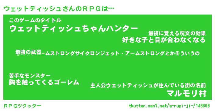 | 伝説のあだ名 | 『封印されし竜騎士ウェットティッシュ』 |