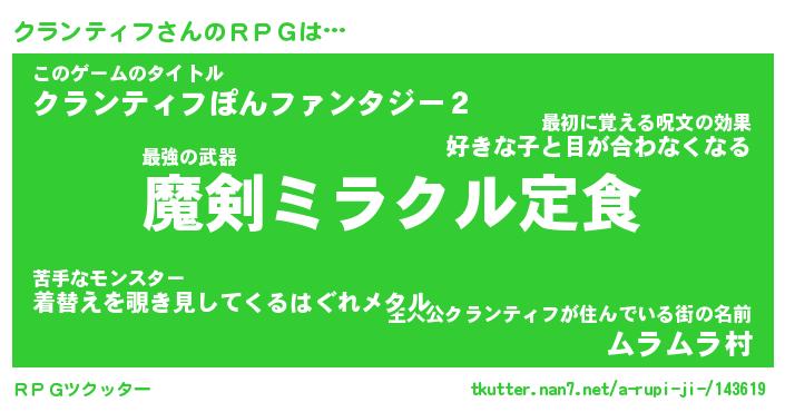 | 伝説のあだ名 | 『伝説の竜騎士クランティフ』 |