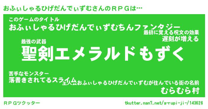 | 胡散臭い通販商品みたいなあだ名 | 『必ず成功する霊験あらたかなお札…その名も「おふぃしゃるひげだんでぃずむ」』 |