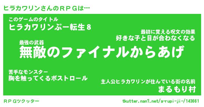 | 男性向けラノベタイトル風あだ名 | 『ヒラカワリンアートオンライン』 |