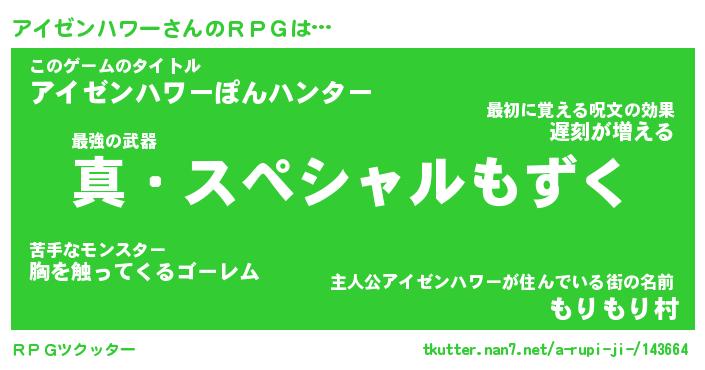 | 男性向けラノベタイトル風あだ名 | 『アイゼンハワーアートオンライン』 |