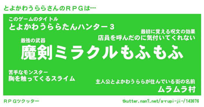 | 胡散臭い通販商品みたいなあだ名 | 『必ず成功するブレスレット…その名も「とよかわうらら」』 |