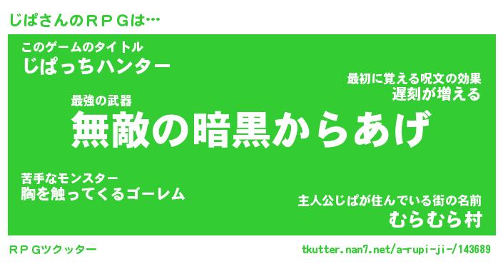 | 伝説のあだ名 | 『封印されし傭兵じぱ』 |