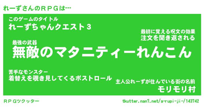 | ファンタジー風あだ名 | 『レーフェル』『エターナルレーズー』 |