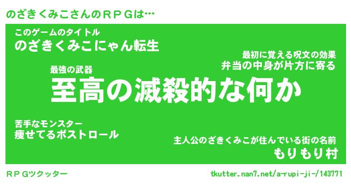 | 男性向けラノベタイトル風あだ名 | 『ノザキクミコアートオンライン』 |