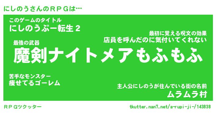 | ファンタジー風あだ名 | 『ニシフェル』『エターナルニシノウー』 |
