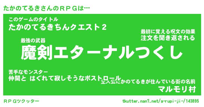 | 男性向けラノベタイトル風あだ名 | 『たかのてるきの憂鬱』 |