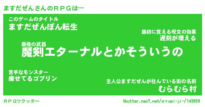 | 男性向けラノベタイトル風あだ名 | 『ますだぜんの憂鬱』 |