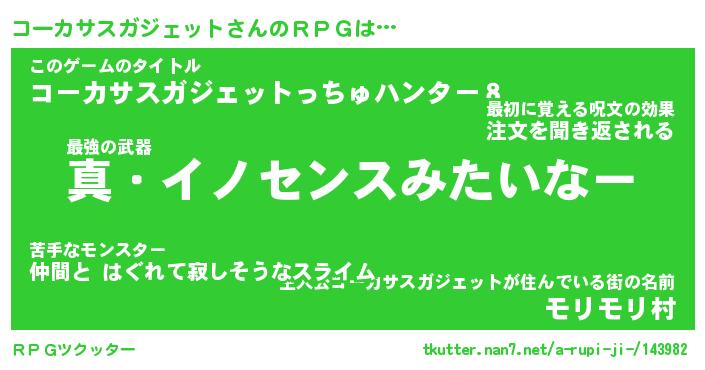 | 伝説のあだ名 | 『封印されしスナイパーコーカサスガジェット』 |