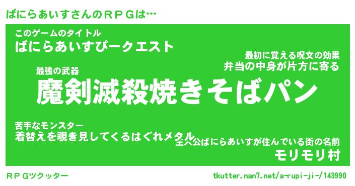 | 伝説のあだ名 | 『伝説のスナイパーばにらあいす』 |