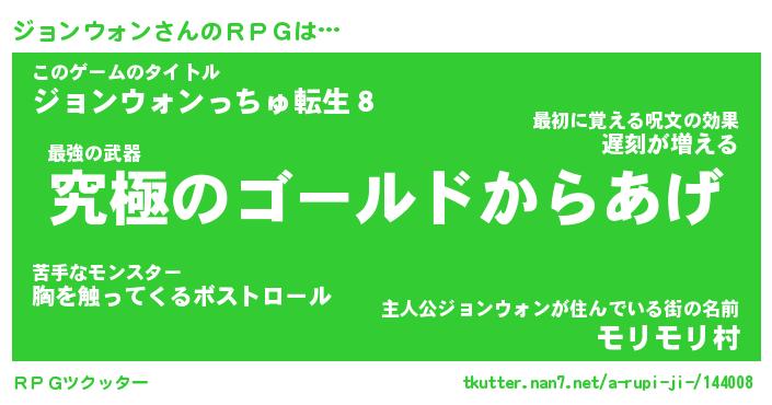 | 男性向けラノベタイトル風あだ名 | 『ジョンウォンアートオンライン』 |