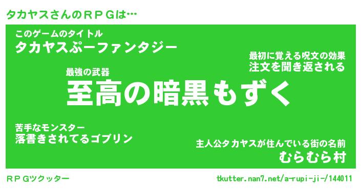 | 男性向けラノベタイトル風あだ名 | 『タカヤスアートオンライン』 |