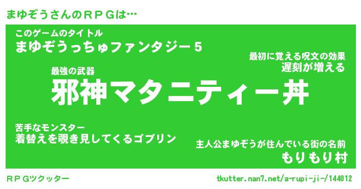 | 胡散臭い通販商品みたいなあだ名 | 『億万長者になれる霊験あらたかなお札…その名も「まゆぞう」』 |