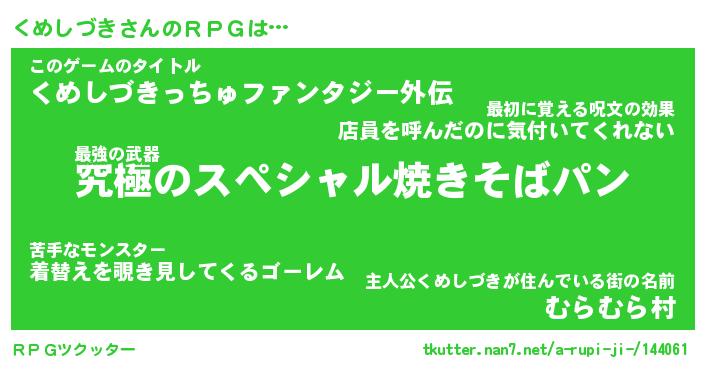 | 男性向けラノベタイトル風あだ名 | 『クメシヅキアートオンライン』 |