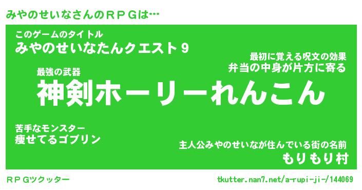 | ヒーロー風カッコイイあだ名 | 『スーパーミヤノセイナ』『銀牙騎士ミヤ』 |