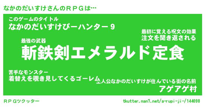 | 男性向けラノベタイトル風あだ名 | 『なかのだいすけの憂鬱』 |