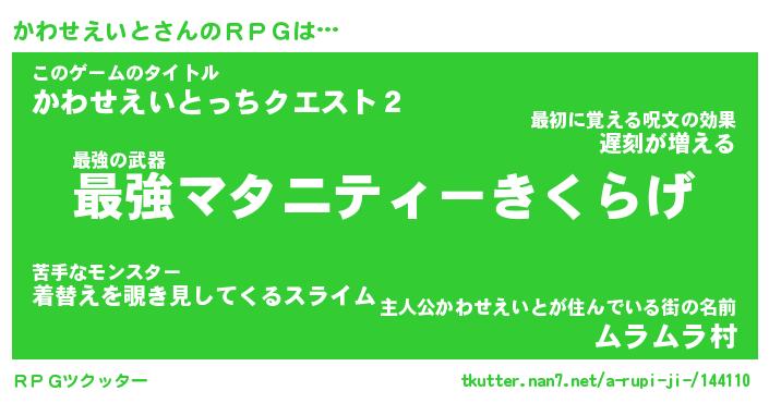 | 男性向けラノベタイトル風あだ名 | 『カワセエイトアートオンライン』 |