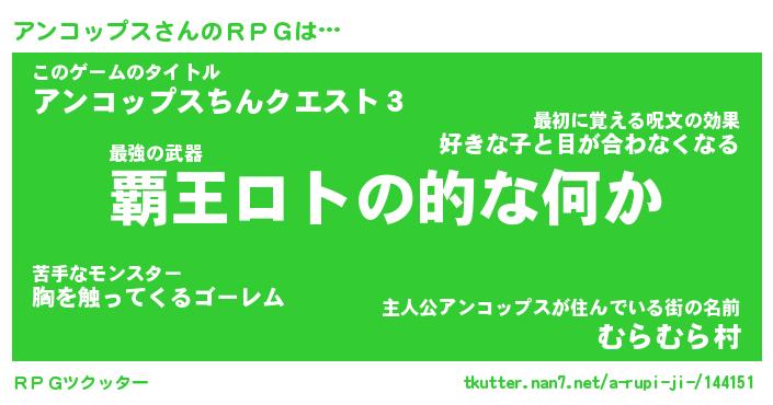 | 男性向けラノベタイトル風あだ名 | 『アンコップスアートオンライン』 |