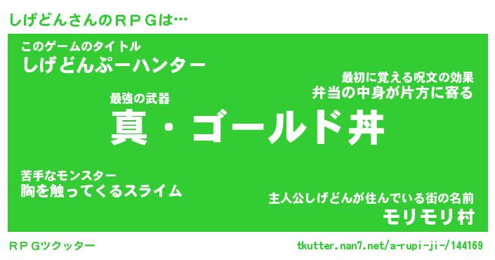 | 男性向けラノベタイトル風あだ名 | 『シゲドンアートオンライン』 |