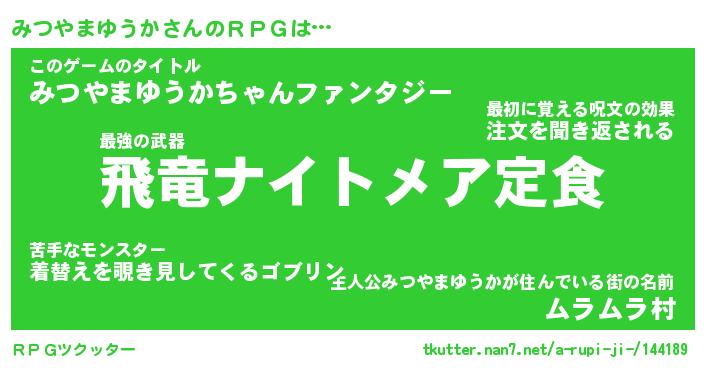 | 胡散臭い通販商品みたいなあだ名 | 『億万長者になれる霊験あらたかなお札…その名も「みつやまゆうか」』 |