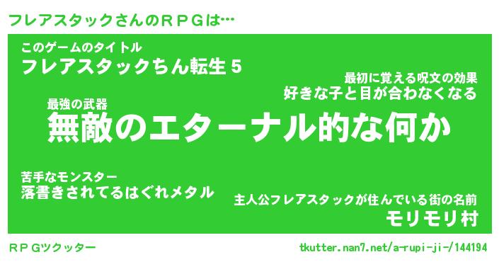 | 胡散臭い通販商品みたいなあだ名 | 『億万長者になれる水晶球…その名も「フレアスタック」』 |