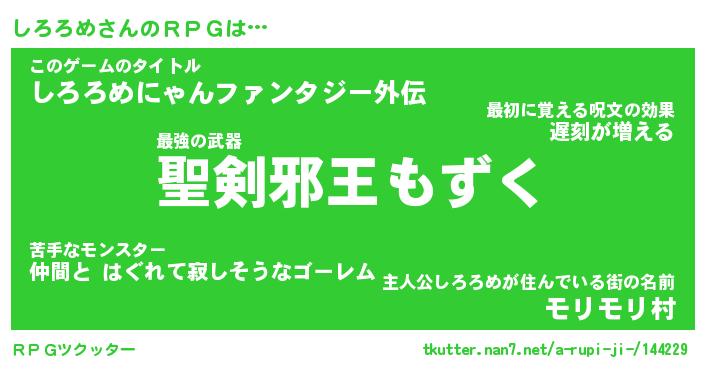| ファンタジー風あだ名 | 『シロフェル』『エターナルシロロメー』 |
