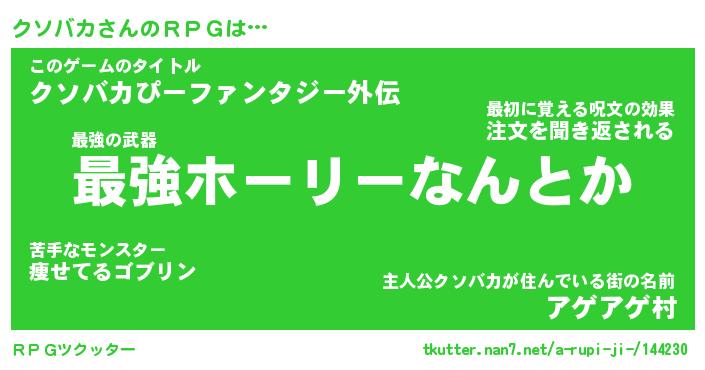 | ファンタジー風あだ名 | 『クソフェル』『エターナルクソバカー』 |